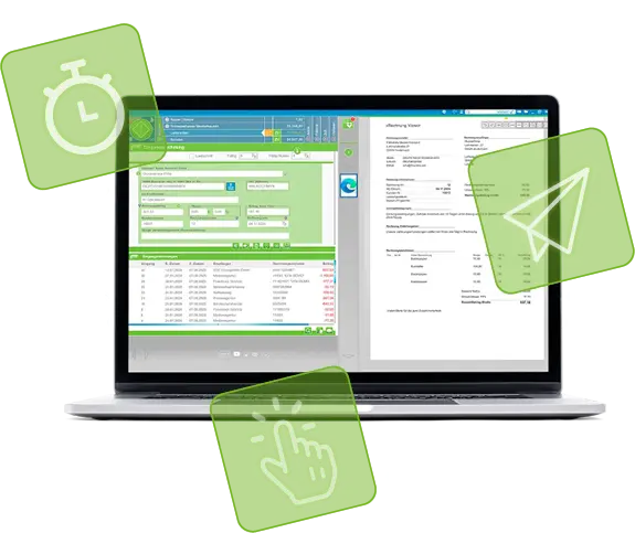 Dank hinterlegter Vorlagen, individueller Einstellungsmöglichkeiten und der zentralen Artikelverwaltung sparen Sie mit FIBUscan wertvolle Zeit und vermeiden manuelle Fehler beim Erfassen der Rechnung. Alle Pflichtangaben werden dabei von FIBUscan automatisch berücksichtigt, sodass Ihre Rechnung stets den aktuellen gesetzlichen Anforderungen entspricht.